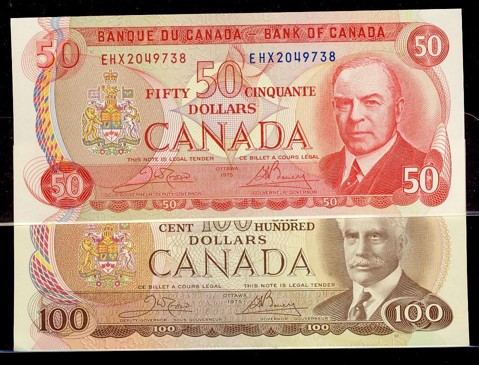 1975 $51bA #EHX2049738 and $100 BC-52a-i #AJC8210812. Nice Original AU-UNC pair of notes.