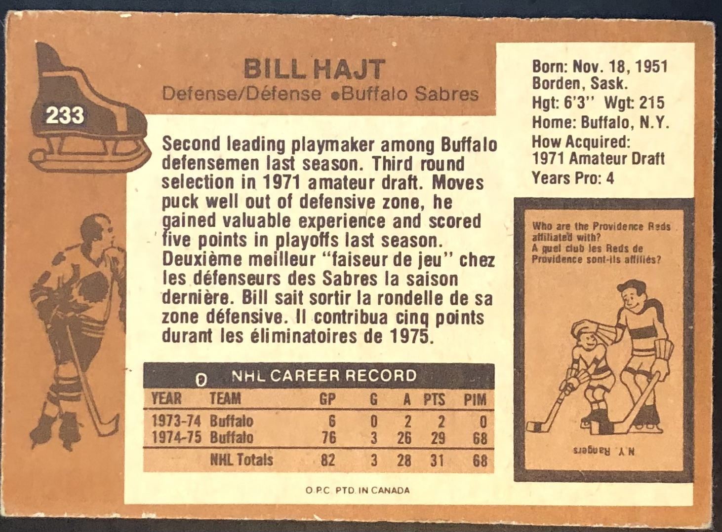 Card #233 NHL, hockey, vintage, OPC, rookie