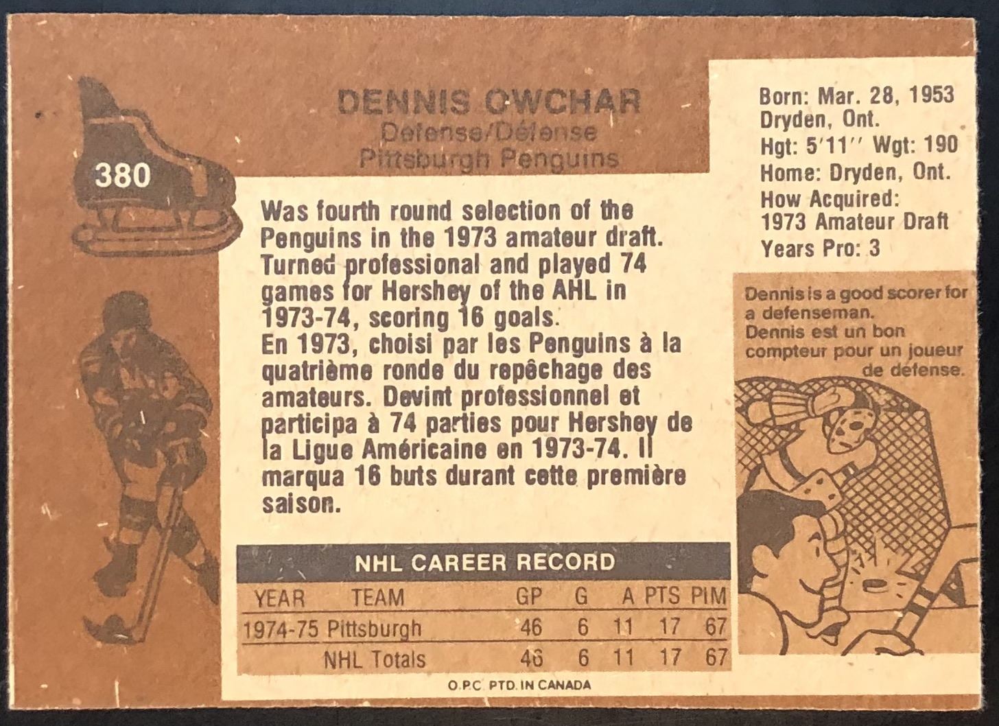 Card #380 NHL, hockey, vintage, OPC, rookie