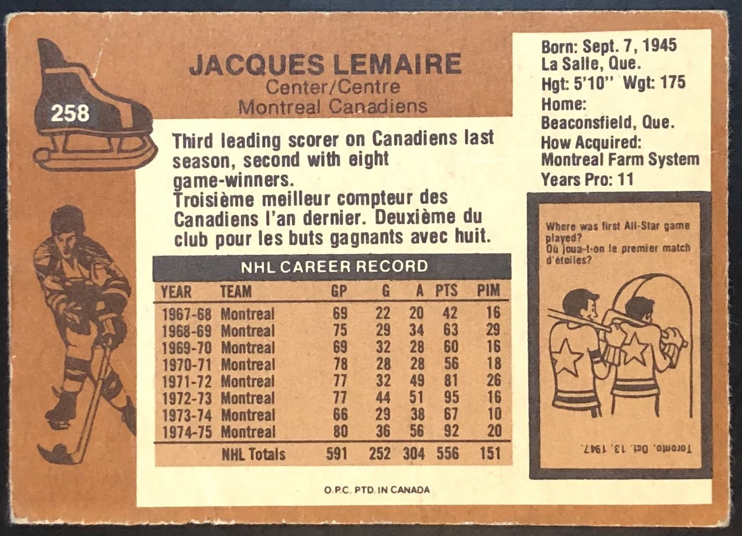 Card #258 NHL, hockey, vintage, OPC, hall of fame