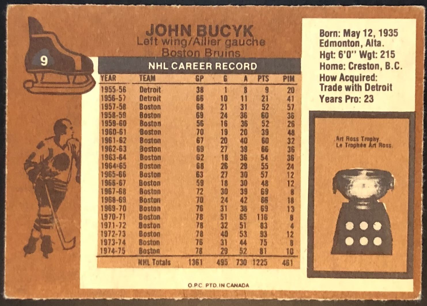 Card #9 NHL, hockey, vintage, OPC, hall of fame