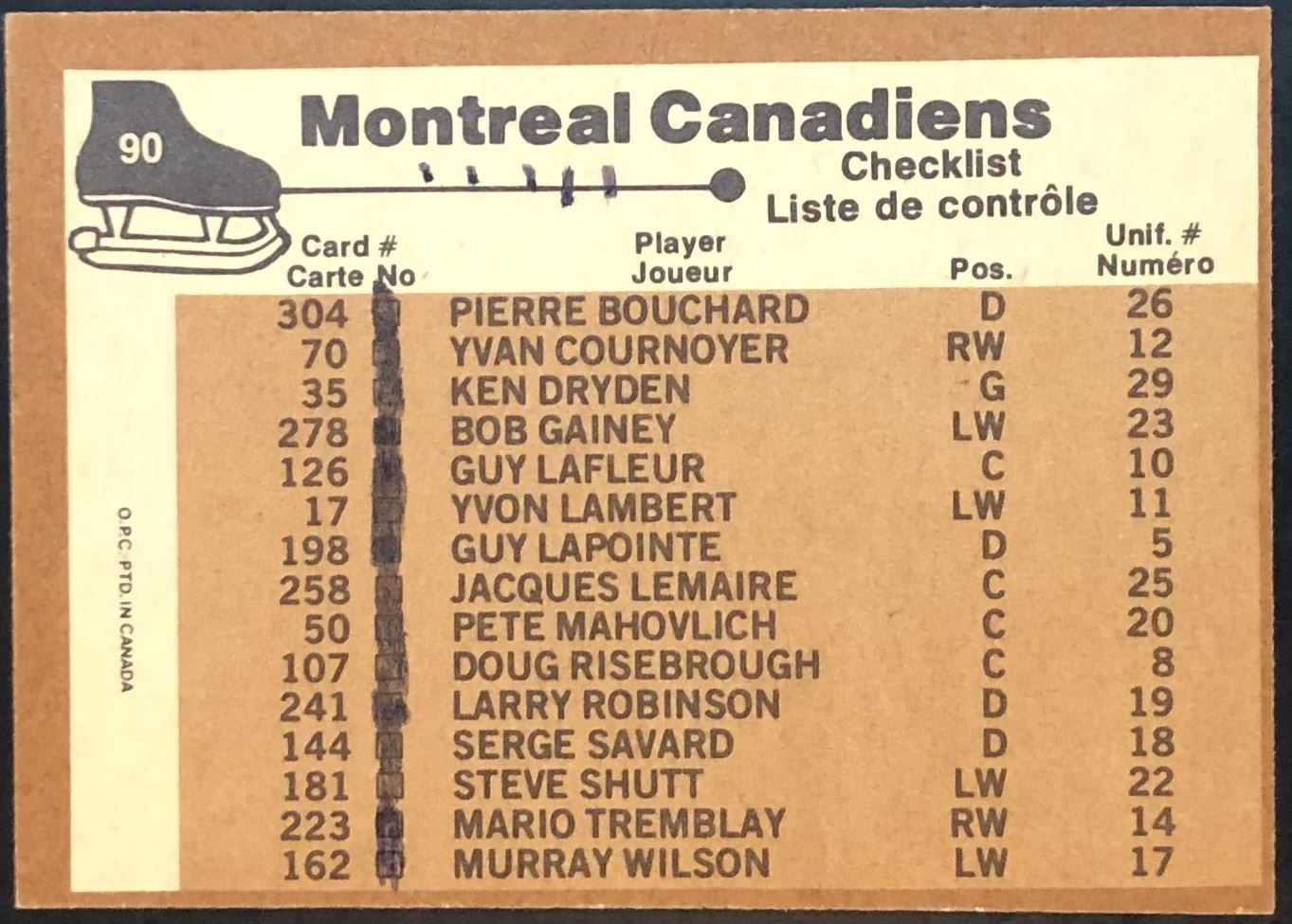 Card #90, ink on back NHL, hockey, vintage, OPC