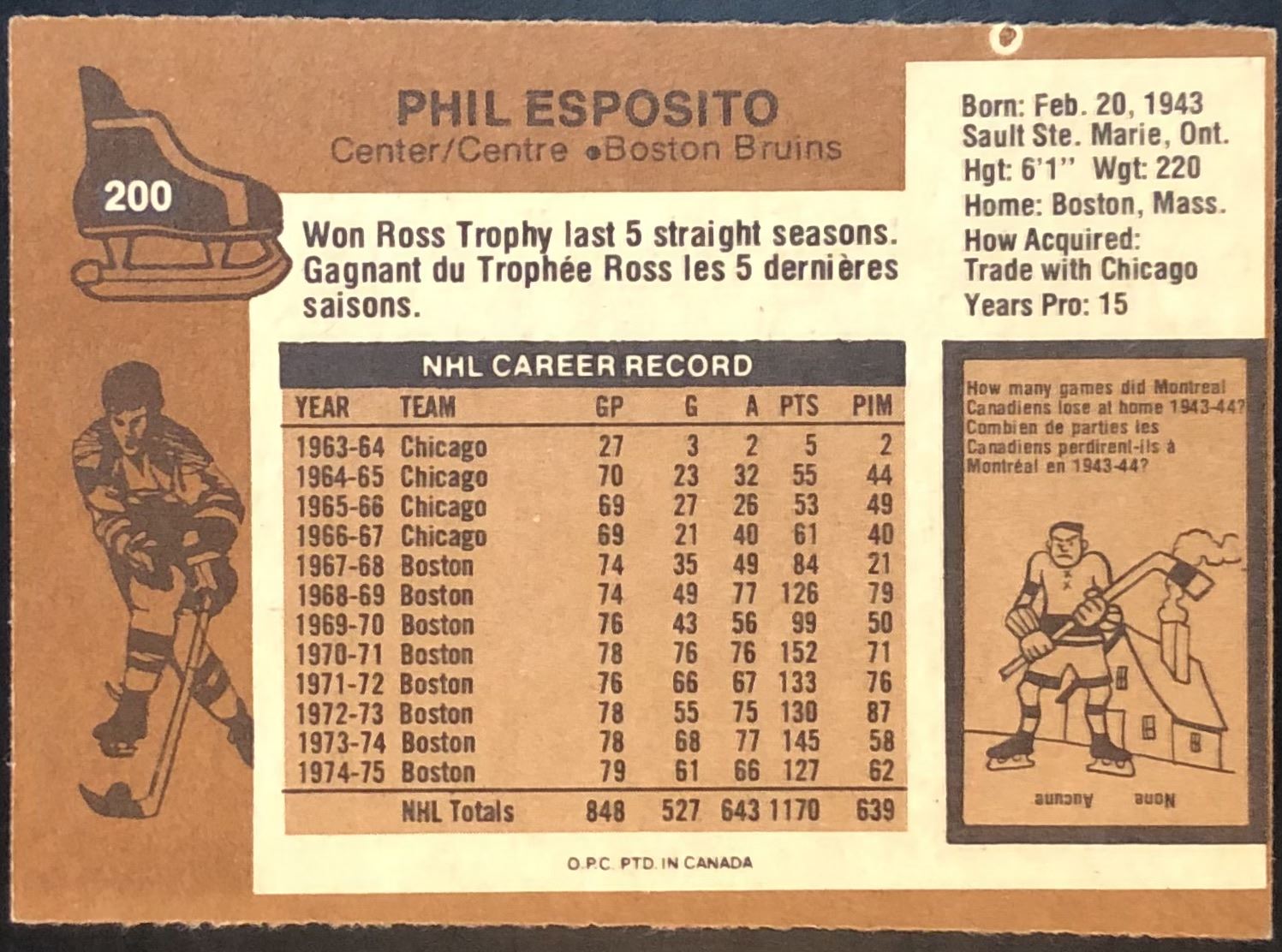 Card #200 NHL, hockey, vintage, OPC, hall of fame