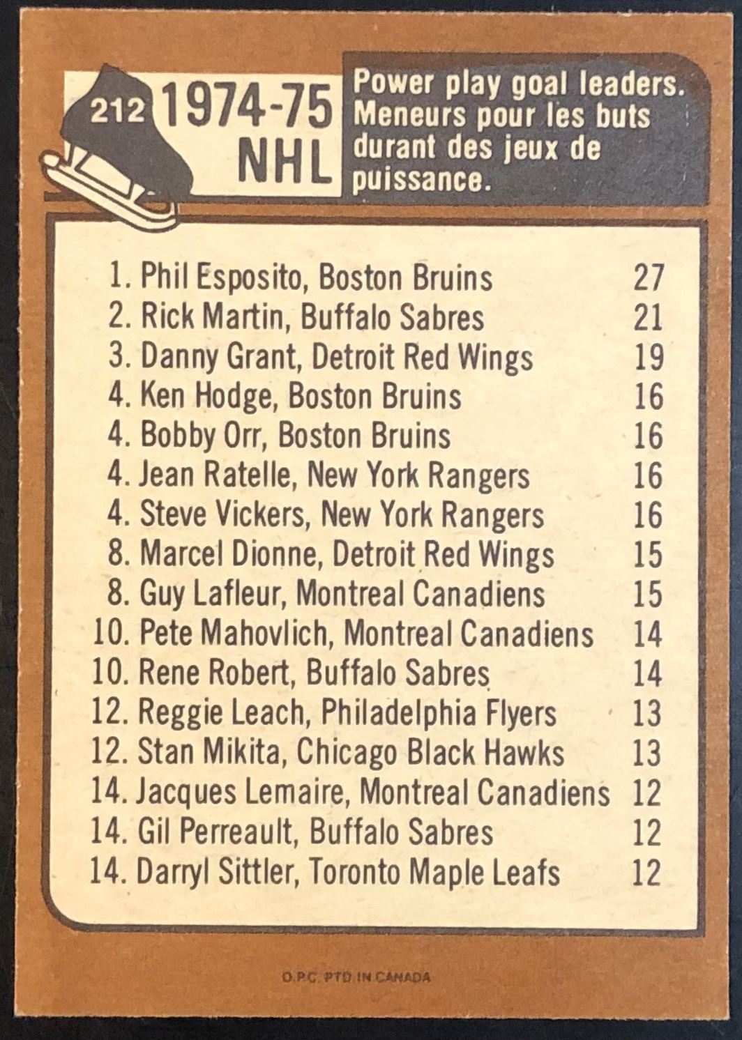 Card #212 NHL, hockey, vintage, OPC, hall of fame
