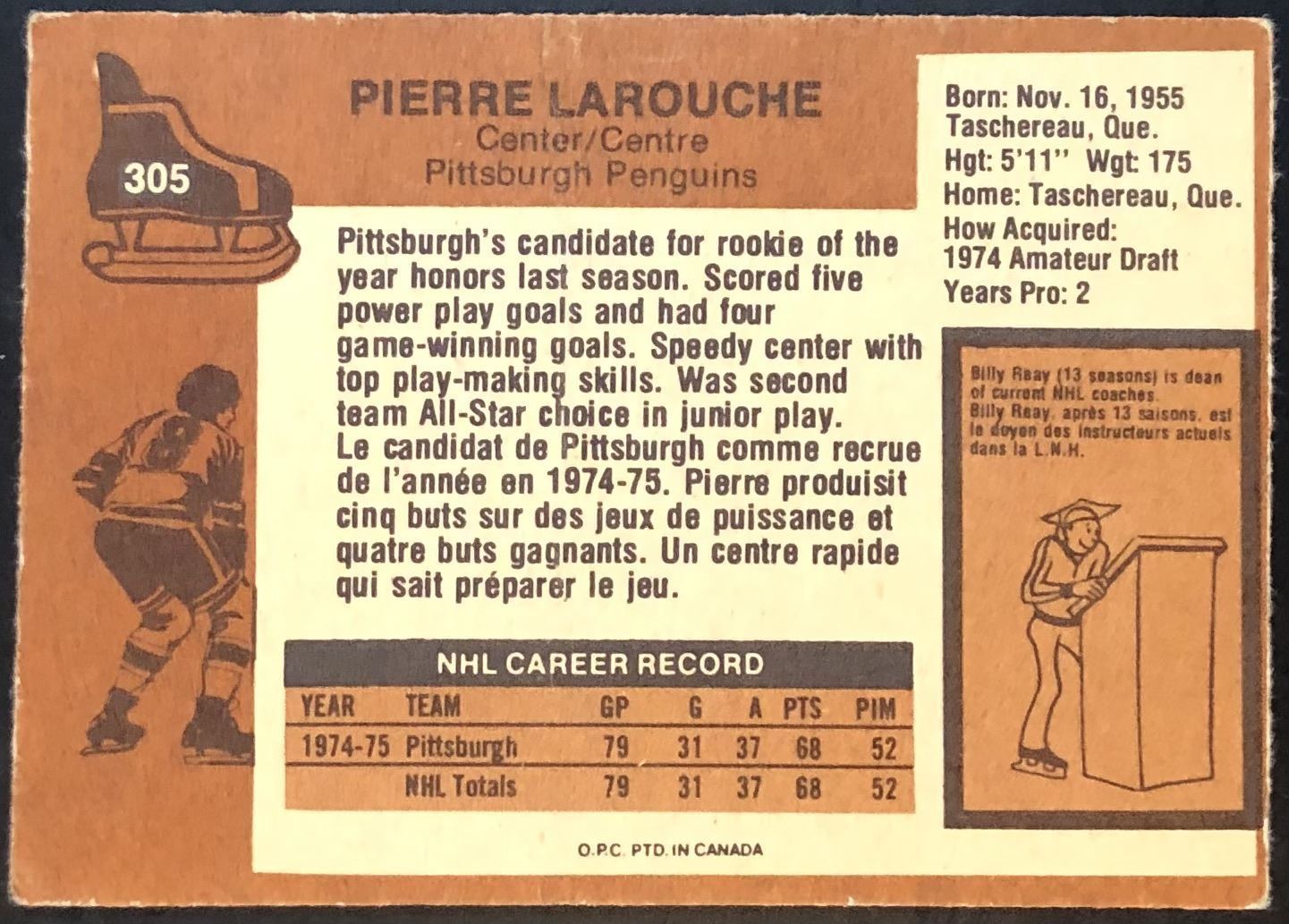 Card #305 NHL, hockey, vintage, OPC, rookie