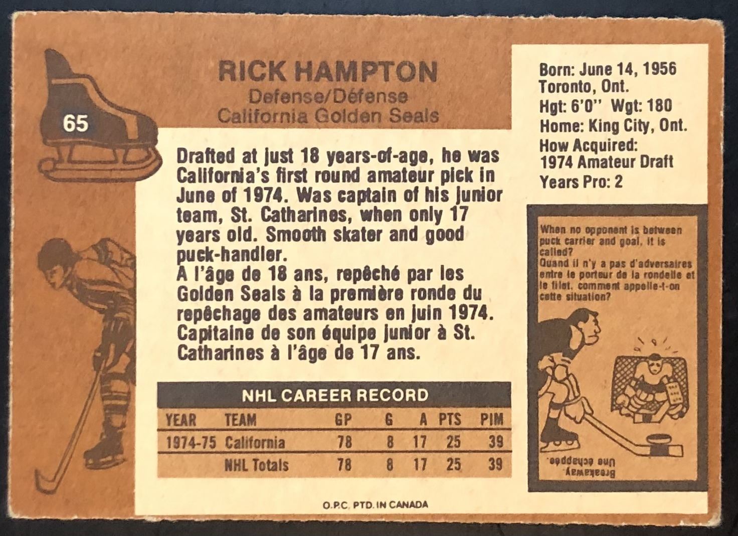 Card #65 NHL, hockey, vintage, OPC, rookie