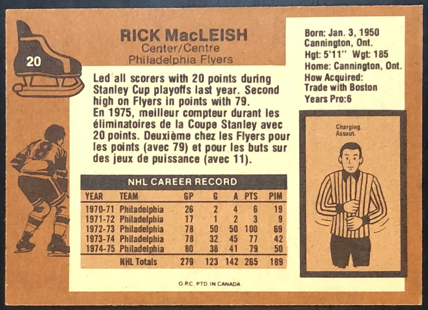 Card #20 NHL, hockey, vintage, OPC, hall of fame