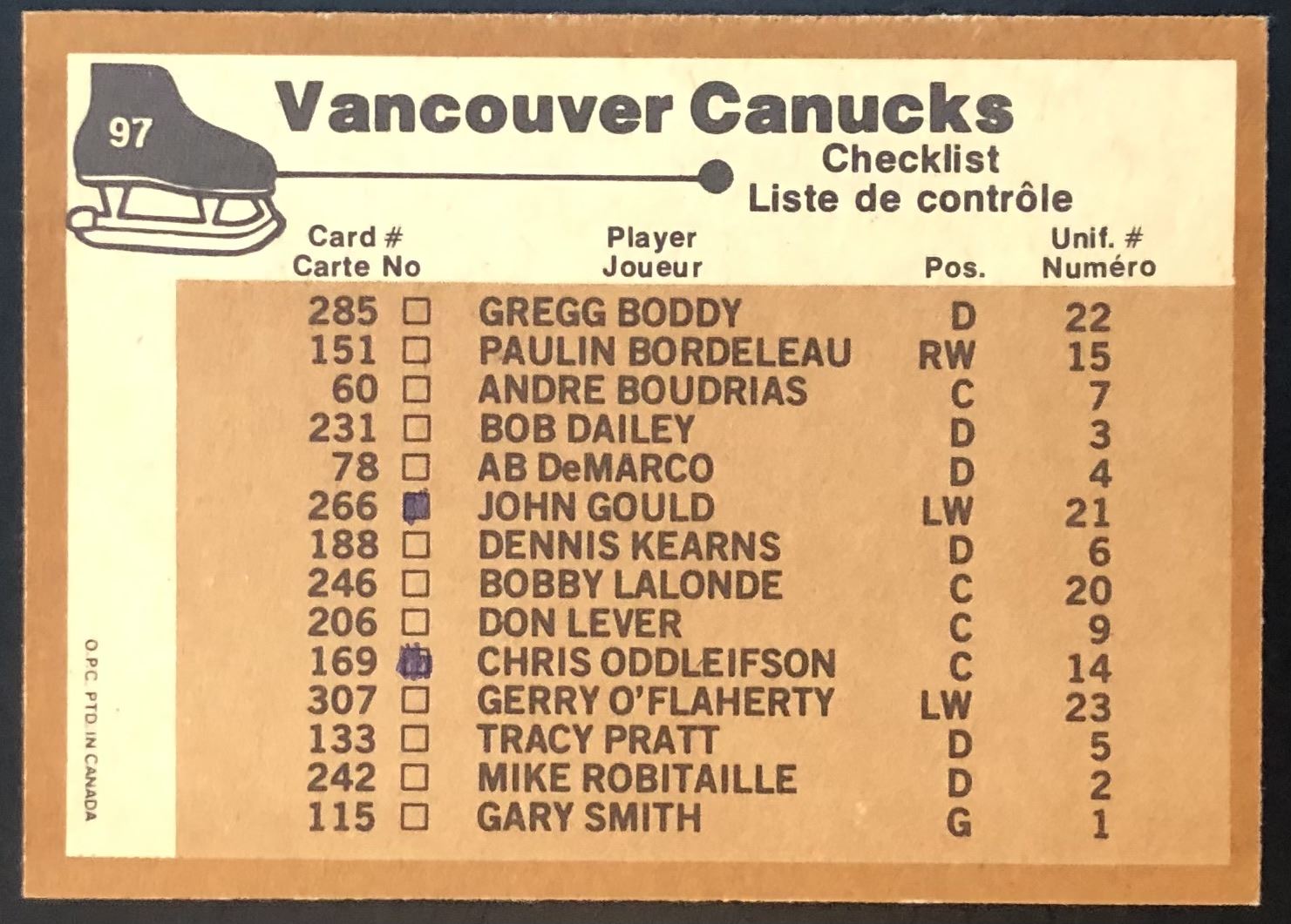 Card #97, ink on back NHL, hockey, vintage, OPC