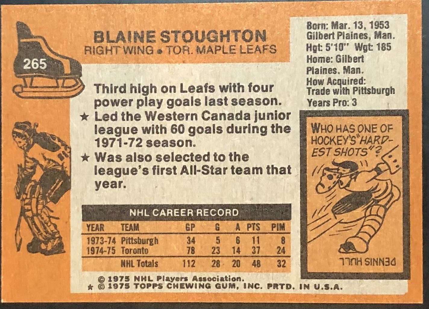 Card #265 NHL, hockey, vintage, rookie