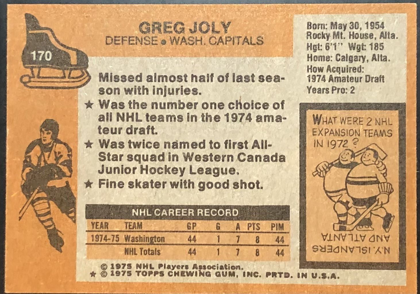 Card #170 NHL, hockey, vintage, rookie
