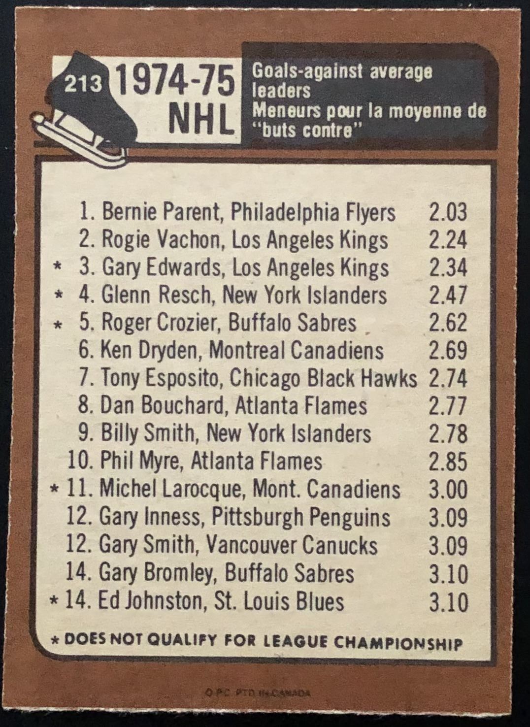 Card #213 NHL, hockey, vintage, OPC, hall of fame