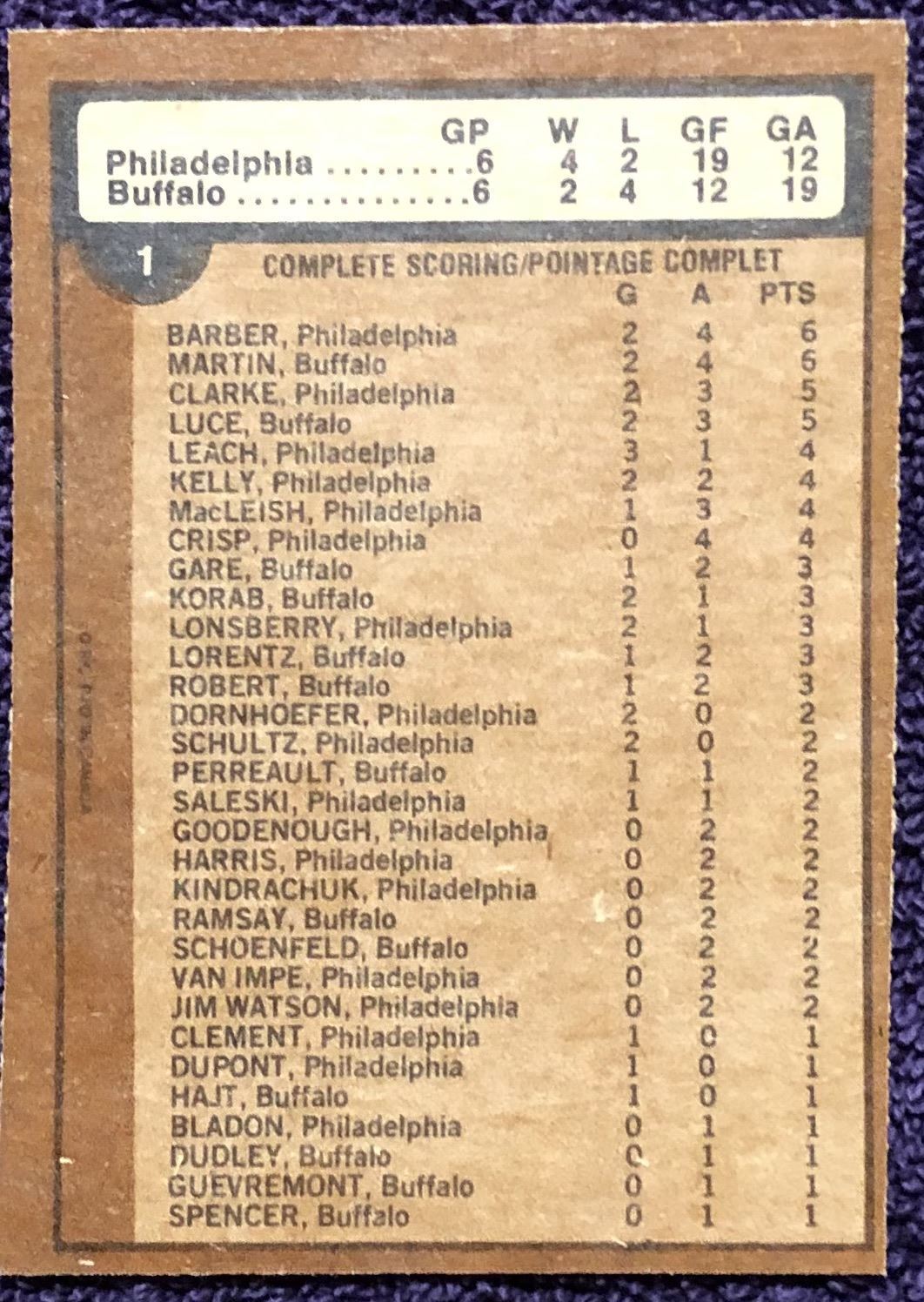 Card #1 NHL, hockey, OPC, vintage, hall of fame