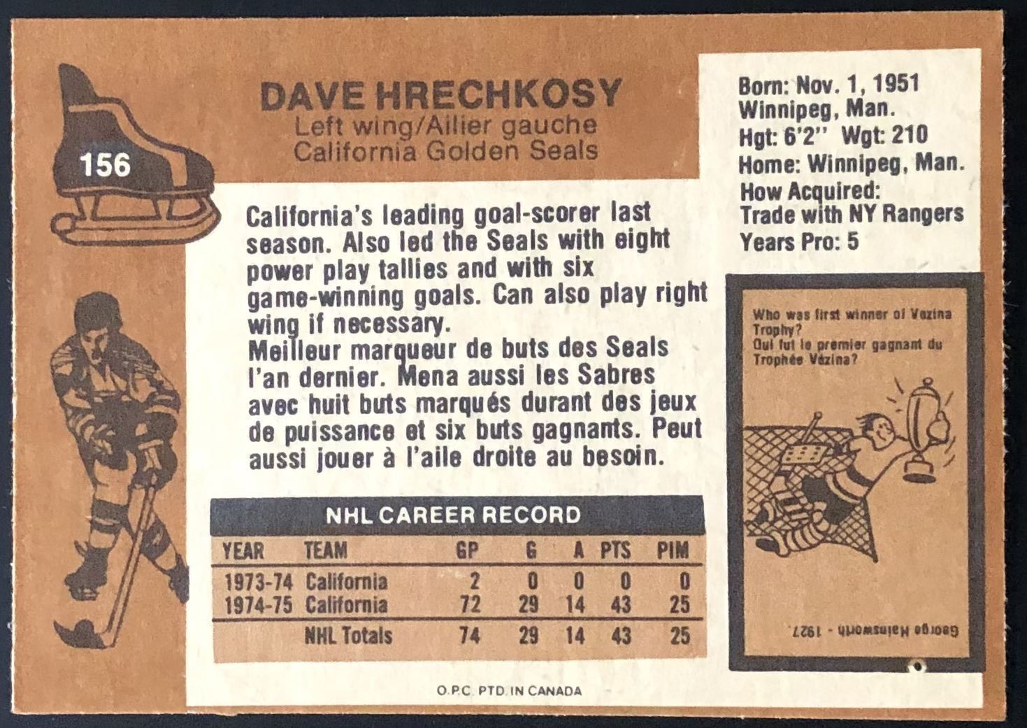 Card #156 NHL, hockey, vintage, OPC, rookie