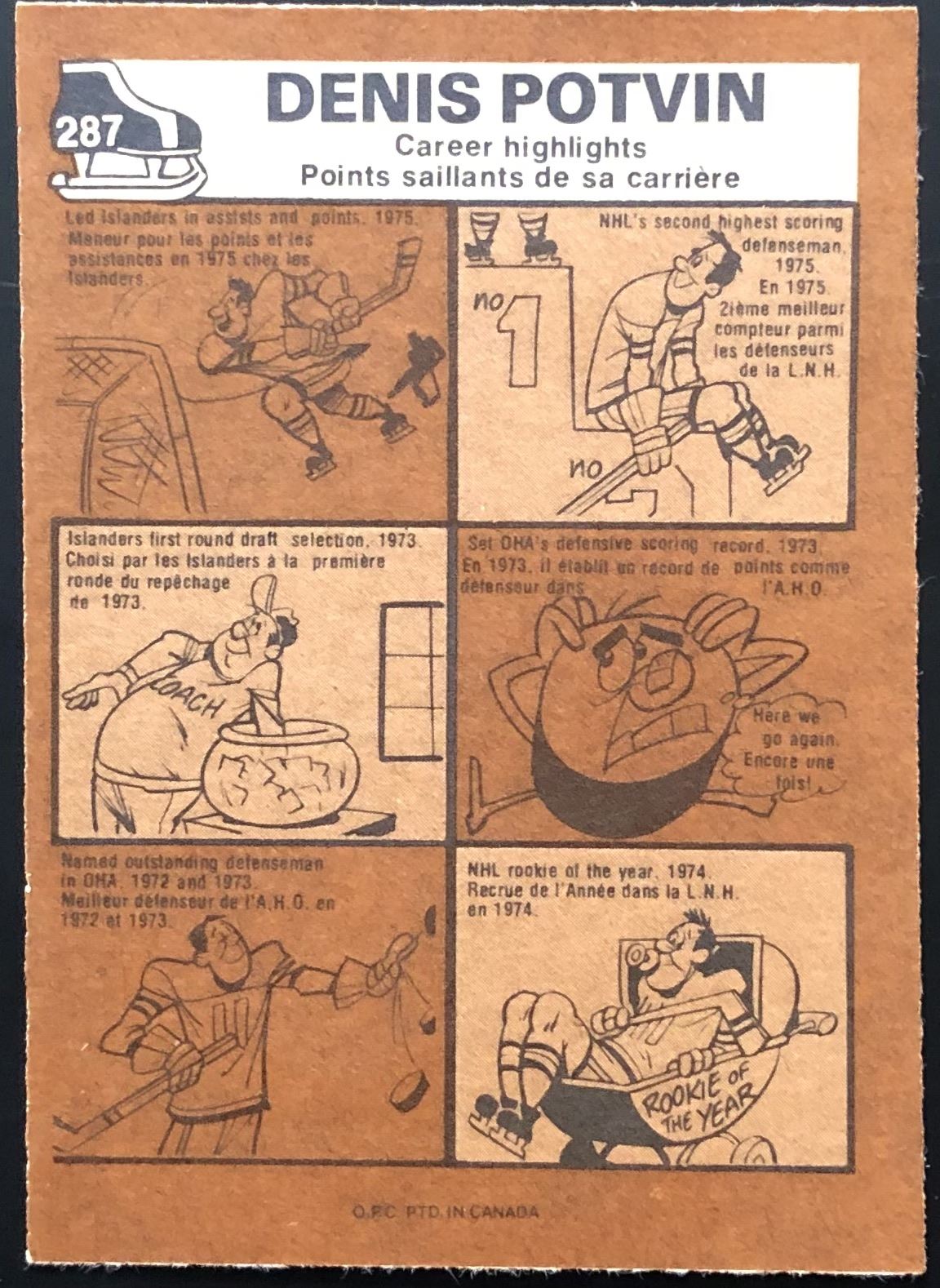Card #287 NHL, hockey, vintage, OPC, hall of fame