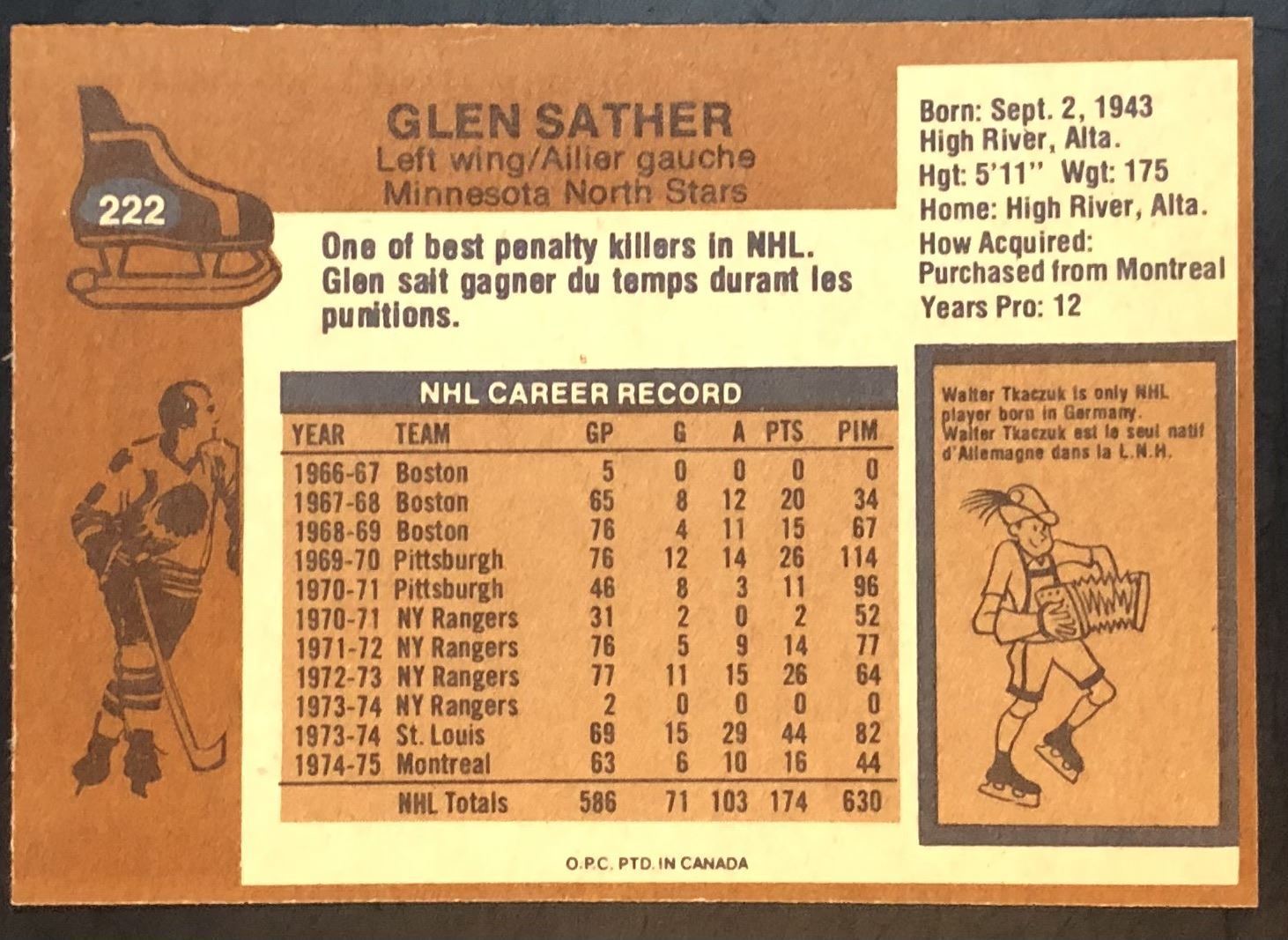 Card #222 NHL, hockey, OPC, vintage, hall of fame