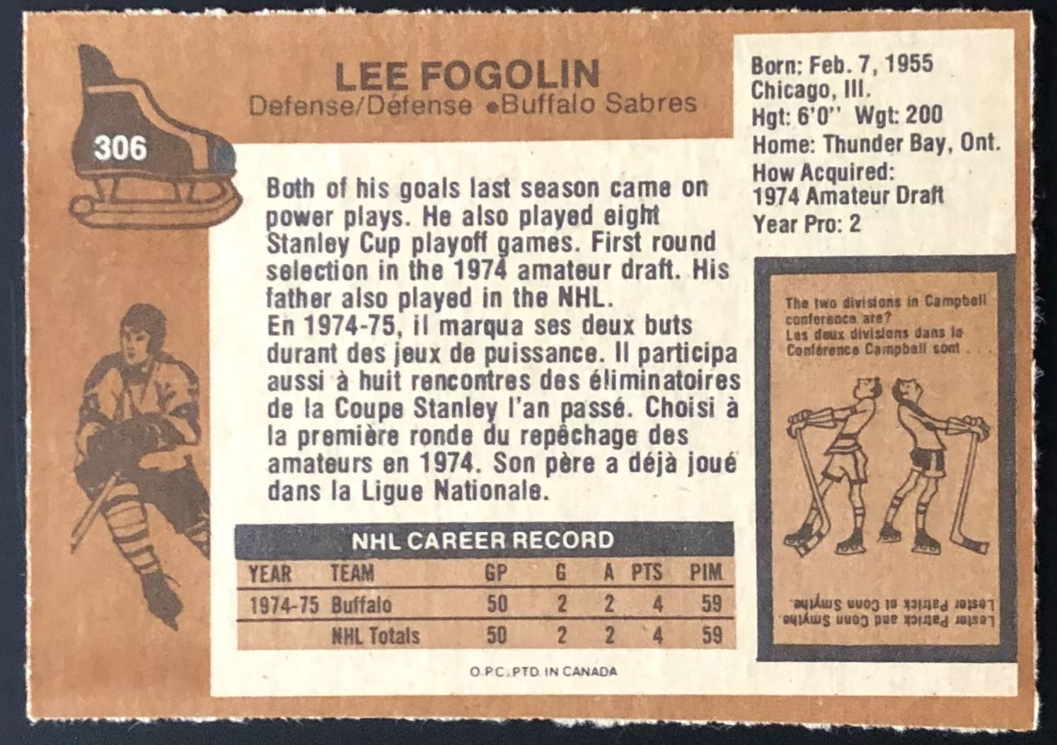 Card #306 NHL, hockey, OPC, vintage, rookie