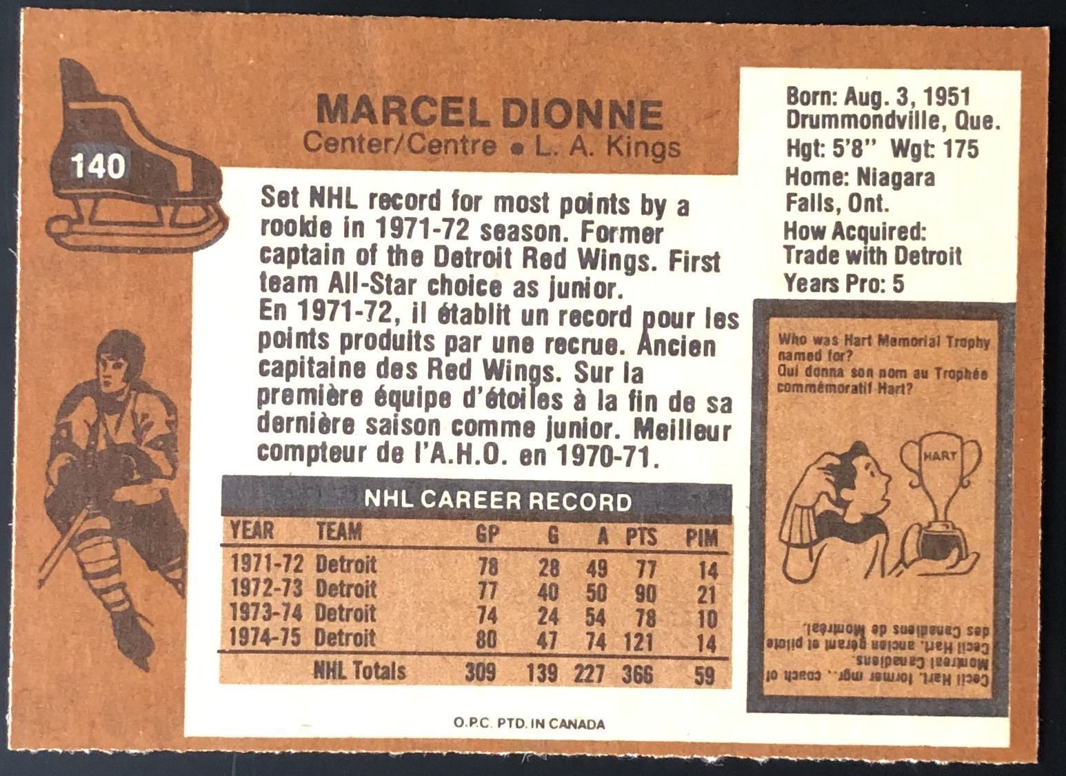 Card #140 NHL, hockey, vintage, OPC, hall of fame
