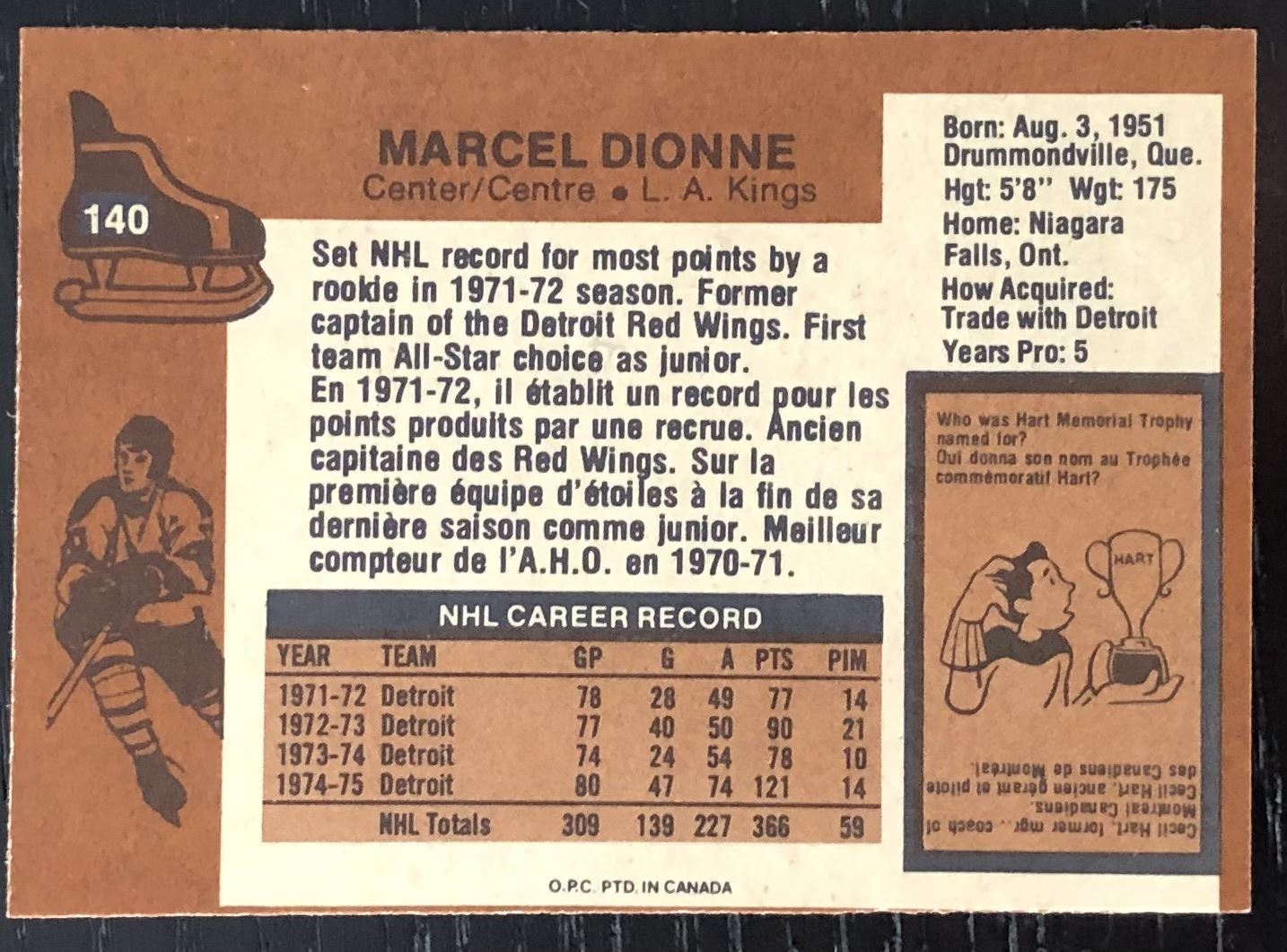 Card #140 NHL, hockey, vintage, OPC, hall of fame