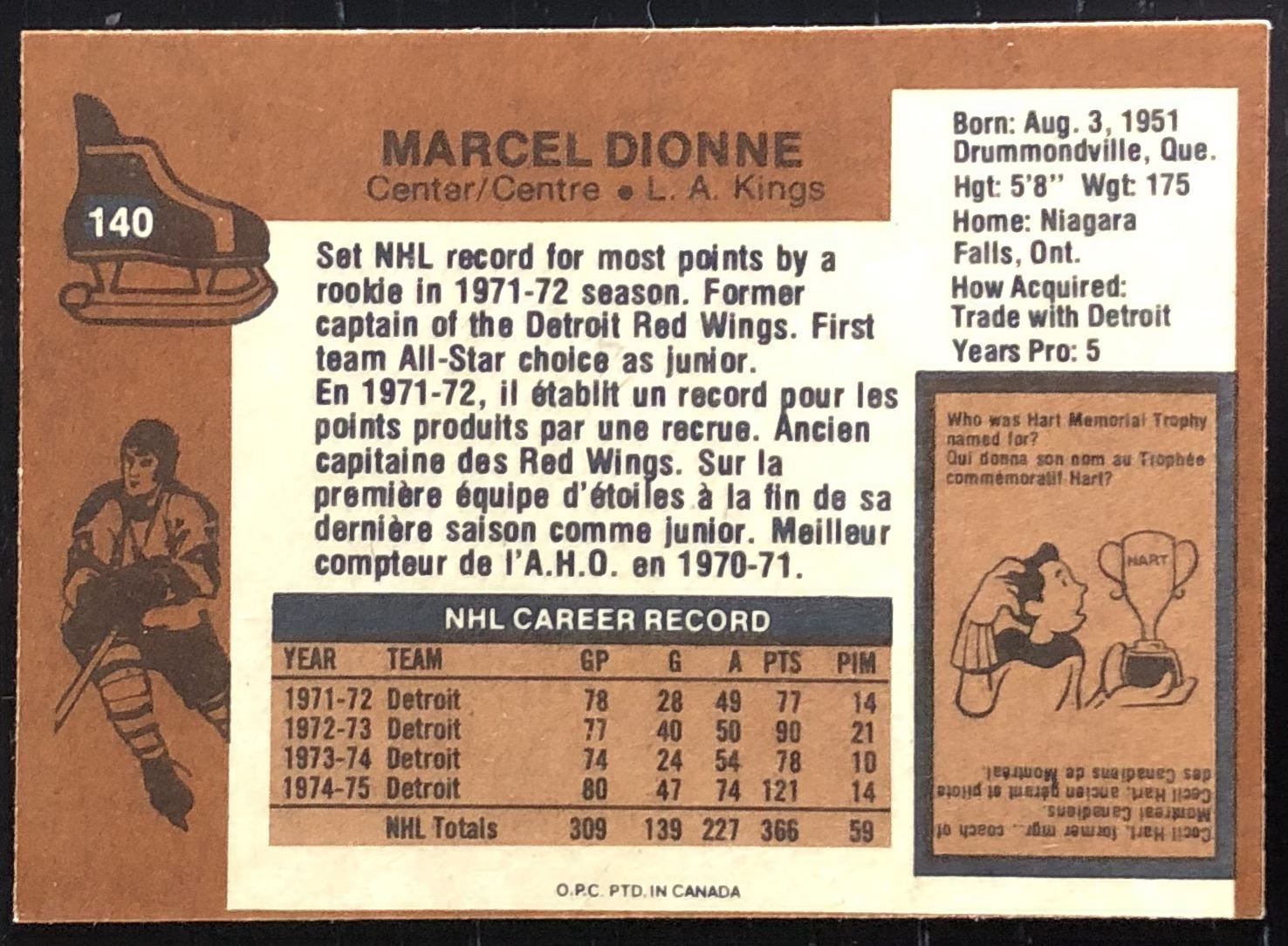 Card #140 NHL, hockey, vintage, OPC, hall of fame