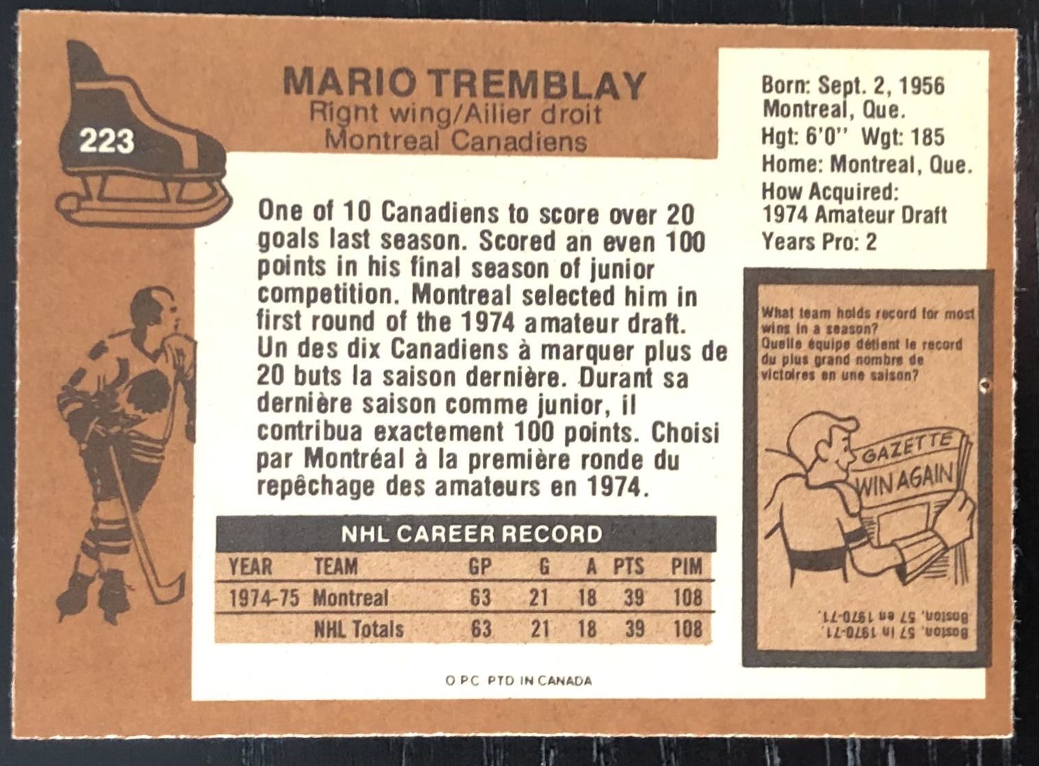 Card #223 NHL, hockey, vintage, OPC, rookie