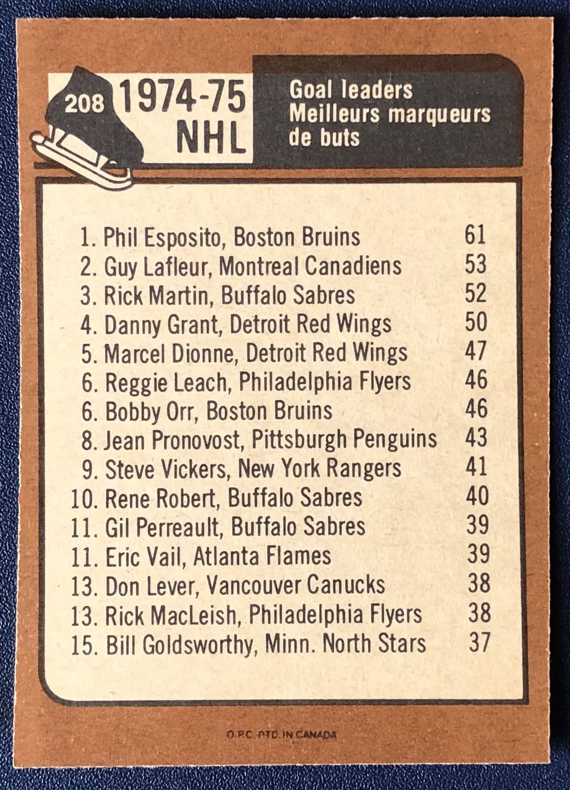 Card #208 NHL, hockey, vintage, hall of fame, OPC