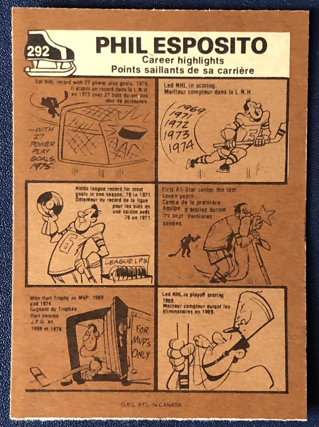 Card #292 NHL, hockey, vintage, hall of fame, OPC