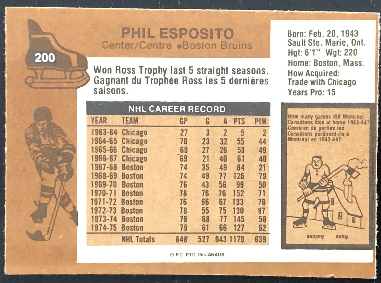 Card #200 NHL, hockey, vintage, OPC, hall of fame