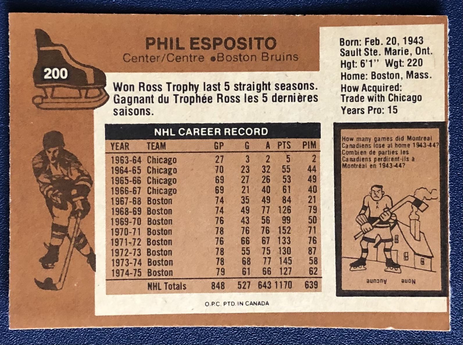 Card #200 NHL, hockey, vintage, hall of fame, OPC