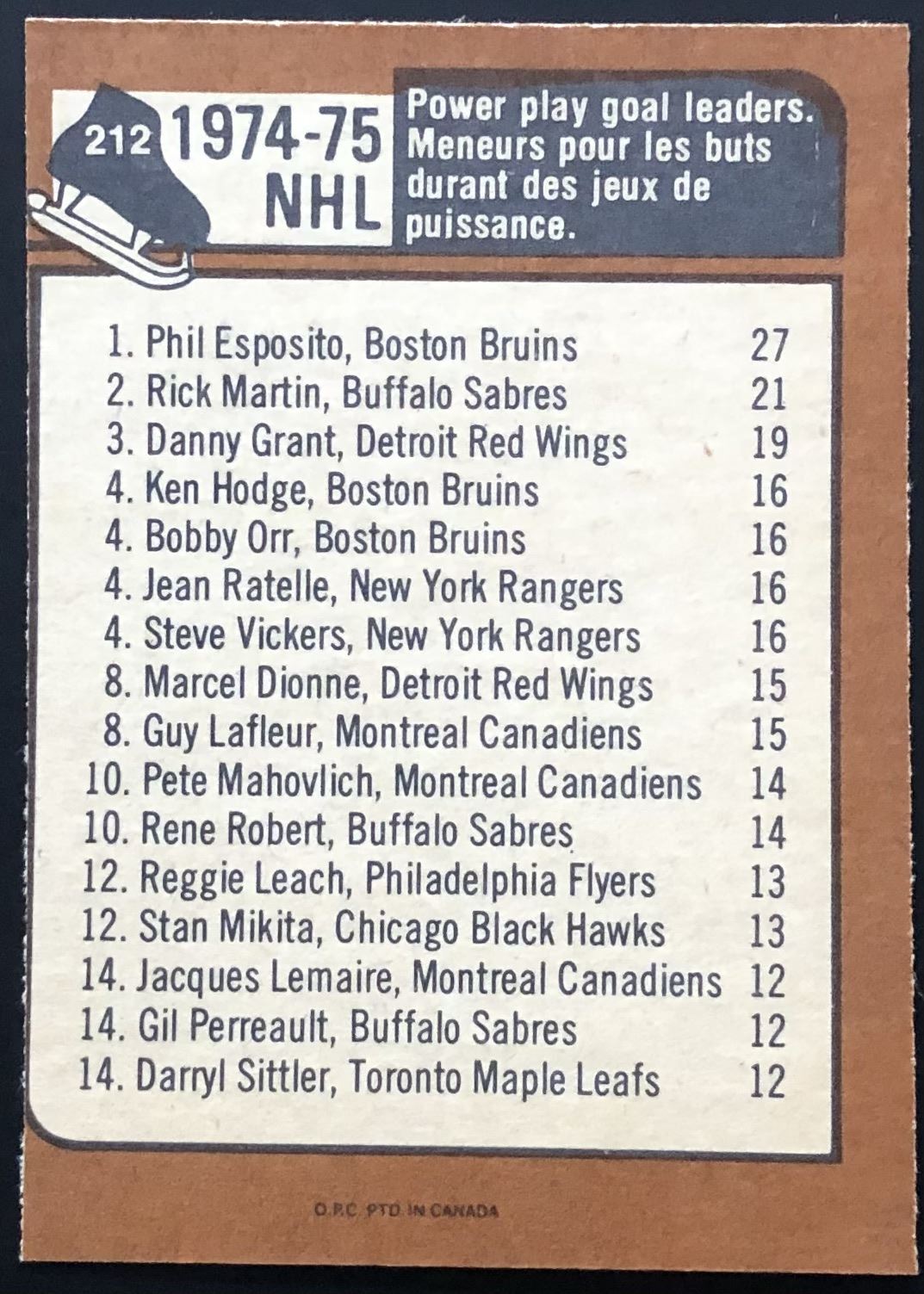 Card #212 NHL, hockey, vintage, OPC, hall of fame