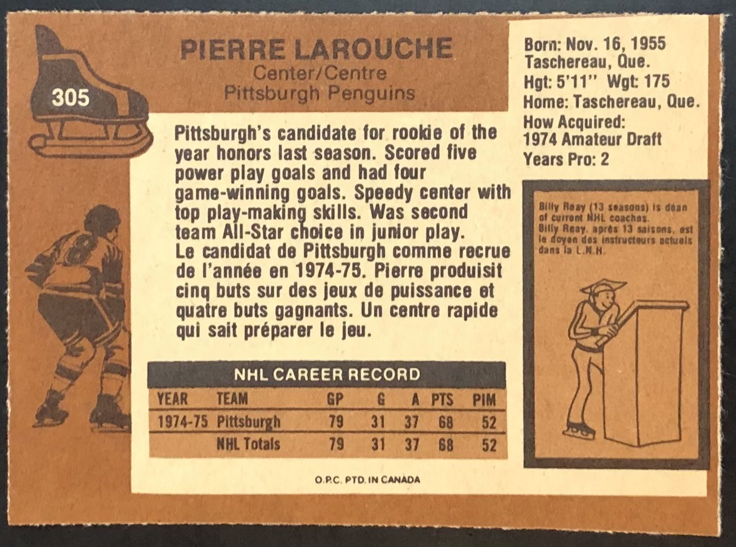 Card #305 hockey, NHL, vintage, OPC, rookie