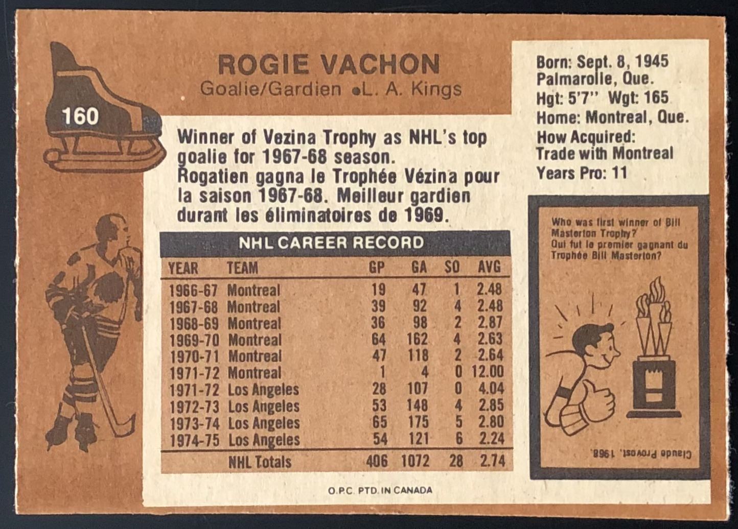 Card #160 NHL, hockey, vintage, OPC, hall of fame