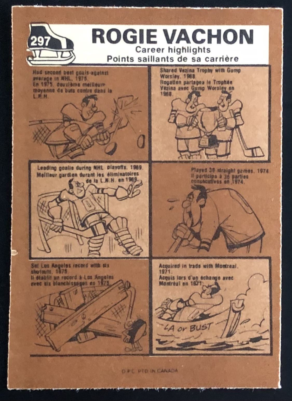 Card #297 NHL, hockey, vintage, OPC, hall of fame