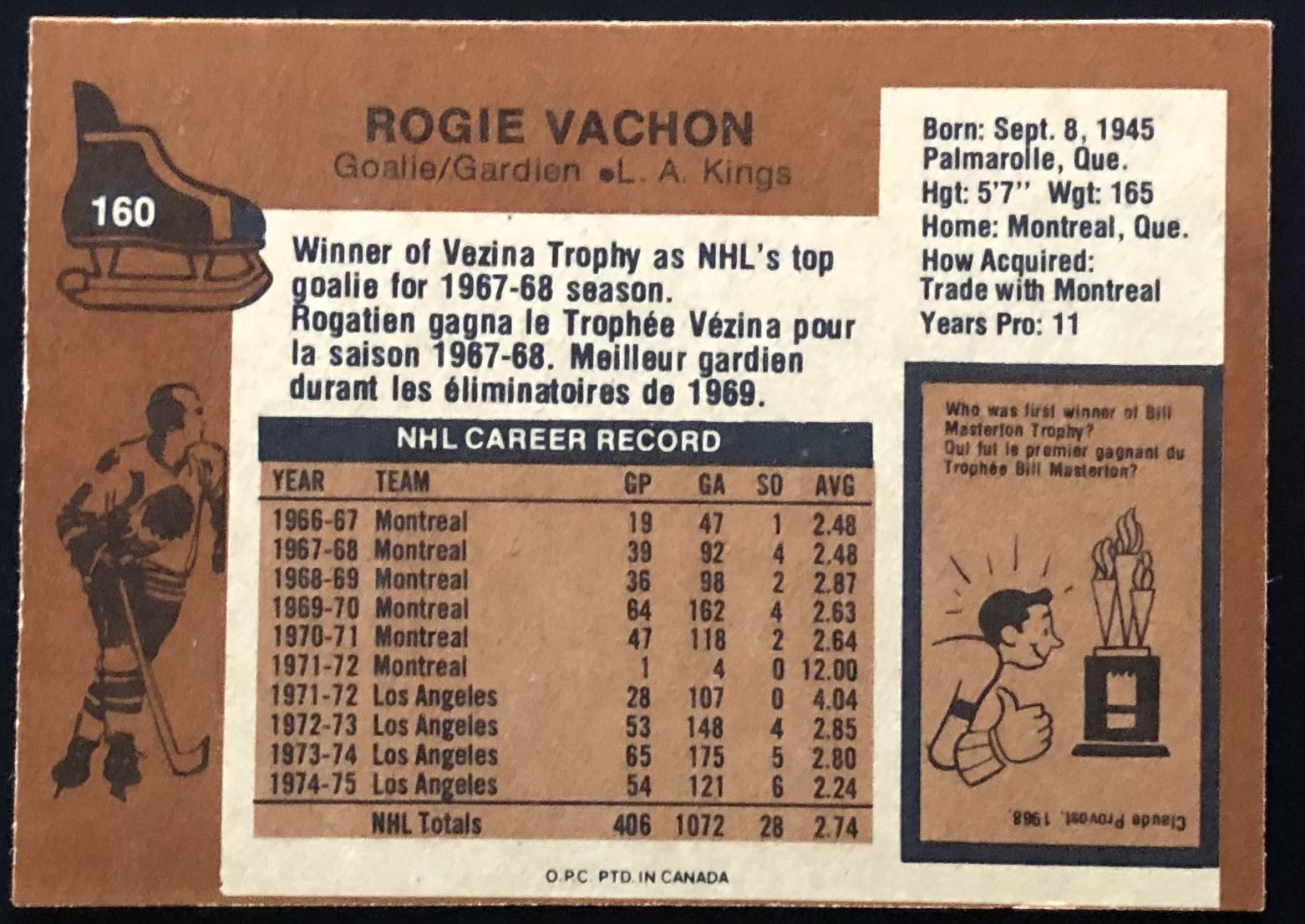 Card #160 NHL, hockey, vintage, OPC, hall of fame