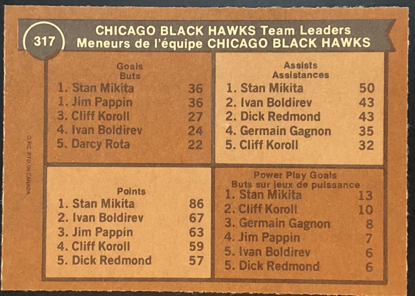 Card #317 hockey, NHL, vintage, OPC, hall of fame