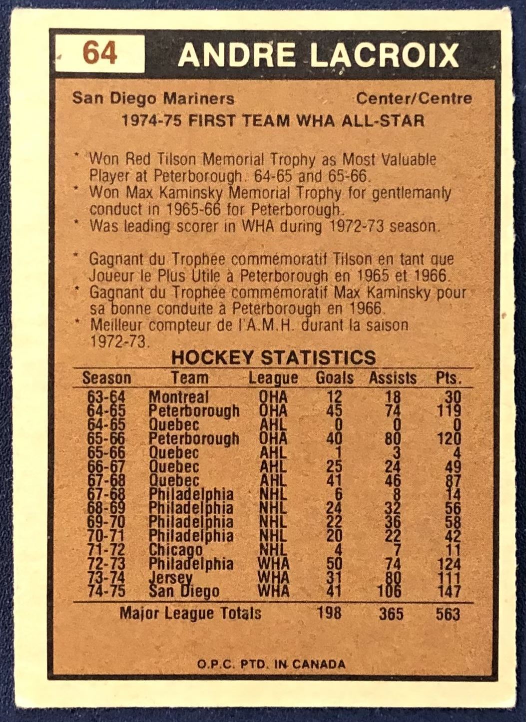 Card #64 WHA, hockey, vintage, OPC