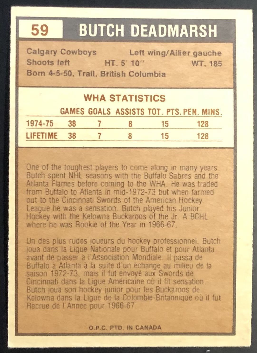 Card #59 WHA, hockey, OPC, vintage, rookie