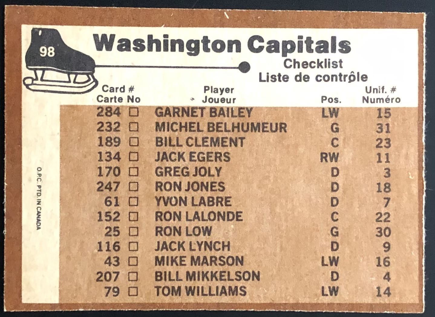 Card #98 NHL, hockey, OPC, vintage
