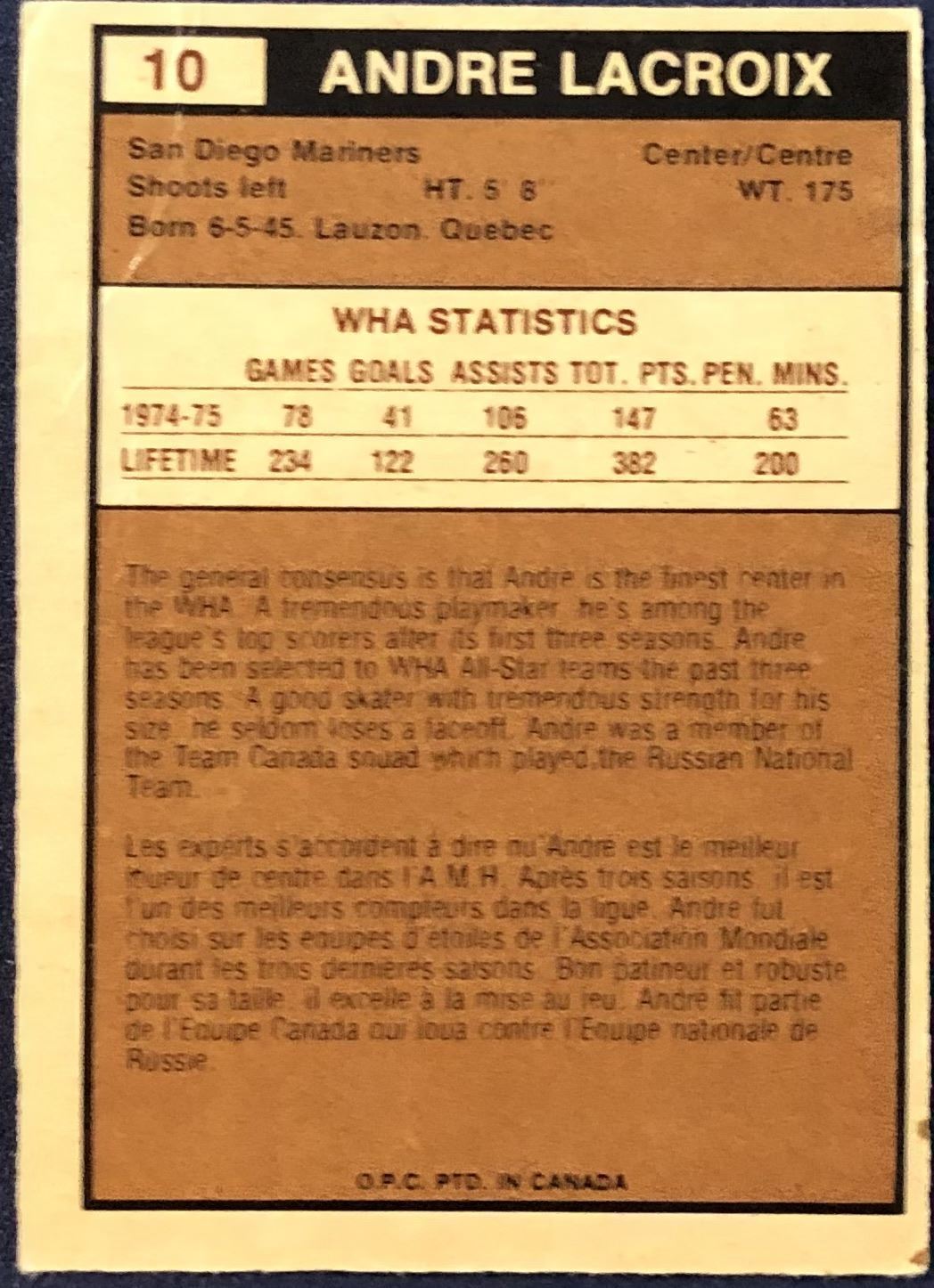 Card #10 WHA, hockey, vintage, OPC