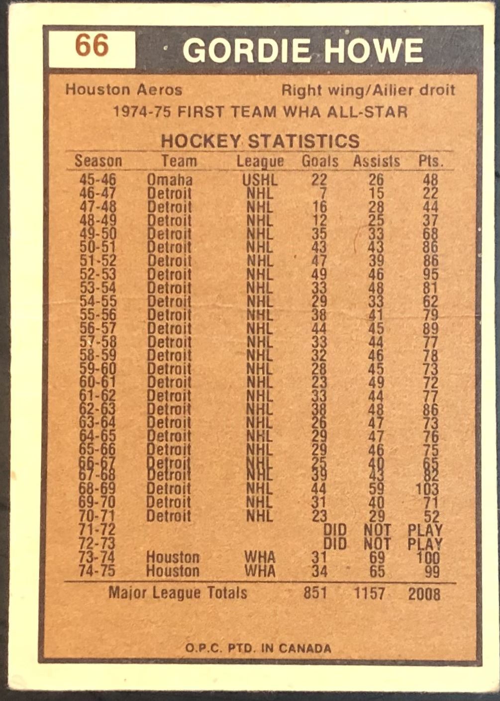 Card #66 OPC, vintage, WHA, hockey, hall of fame