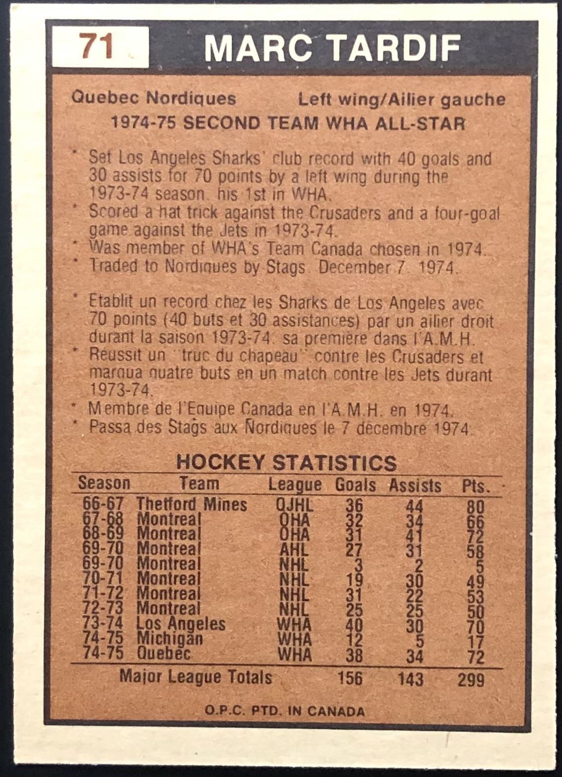 Card #71 WHA, hockey, vintage, OPC