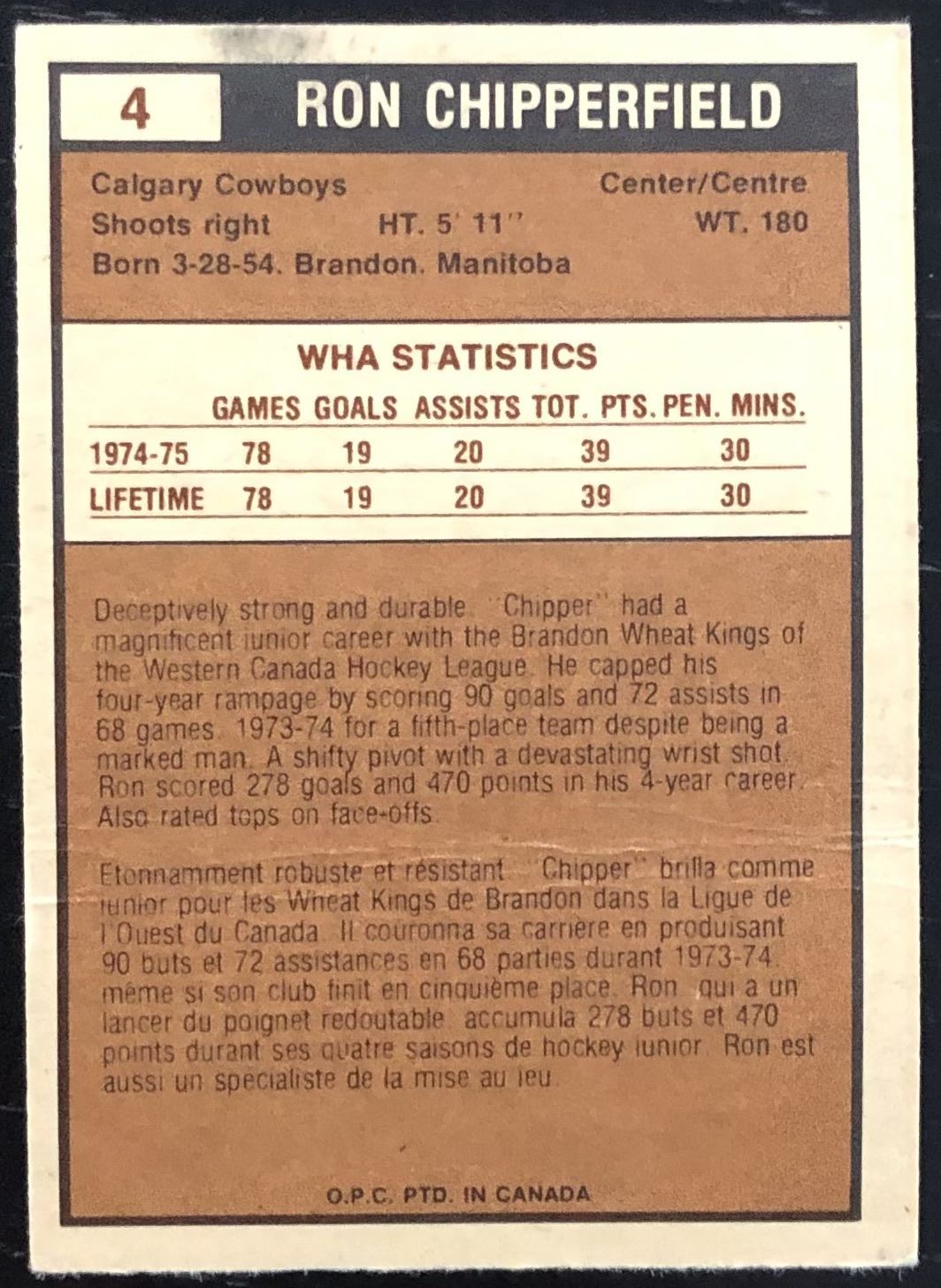 Card #4 hockey, WHA, vintage, rookie