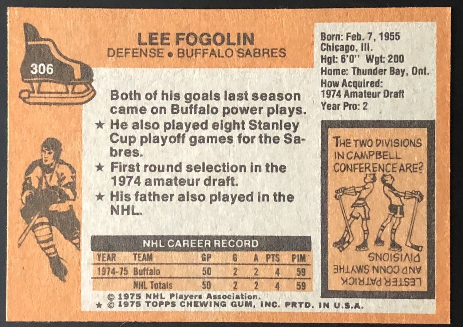 Card #306 hockey, NHL, vintage, rookie
