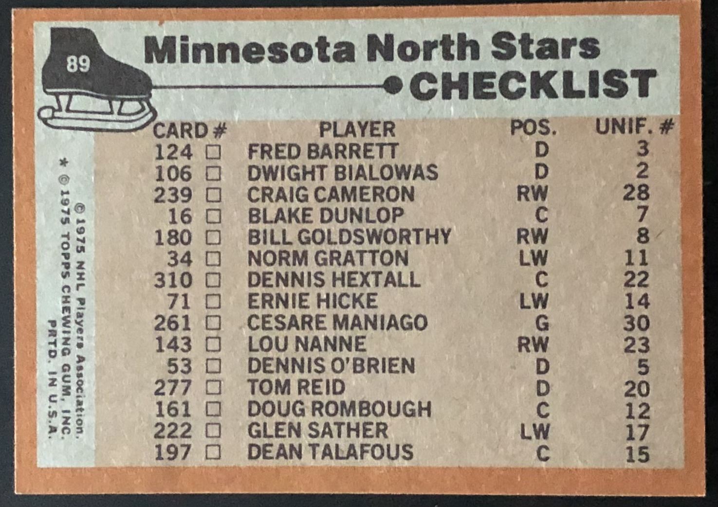 Card #89 NHL, hockey, vintage