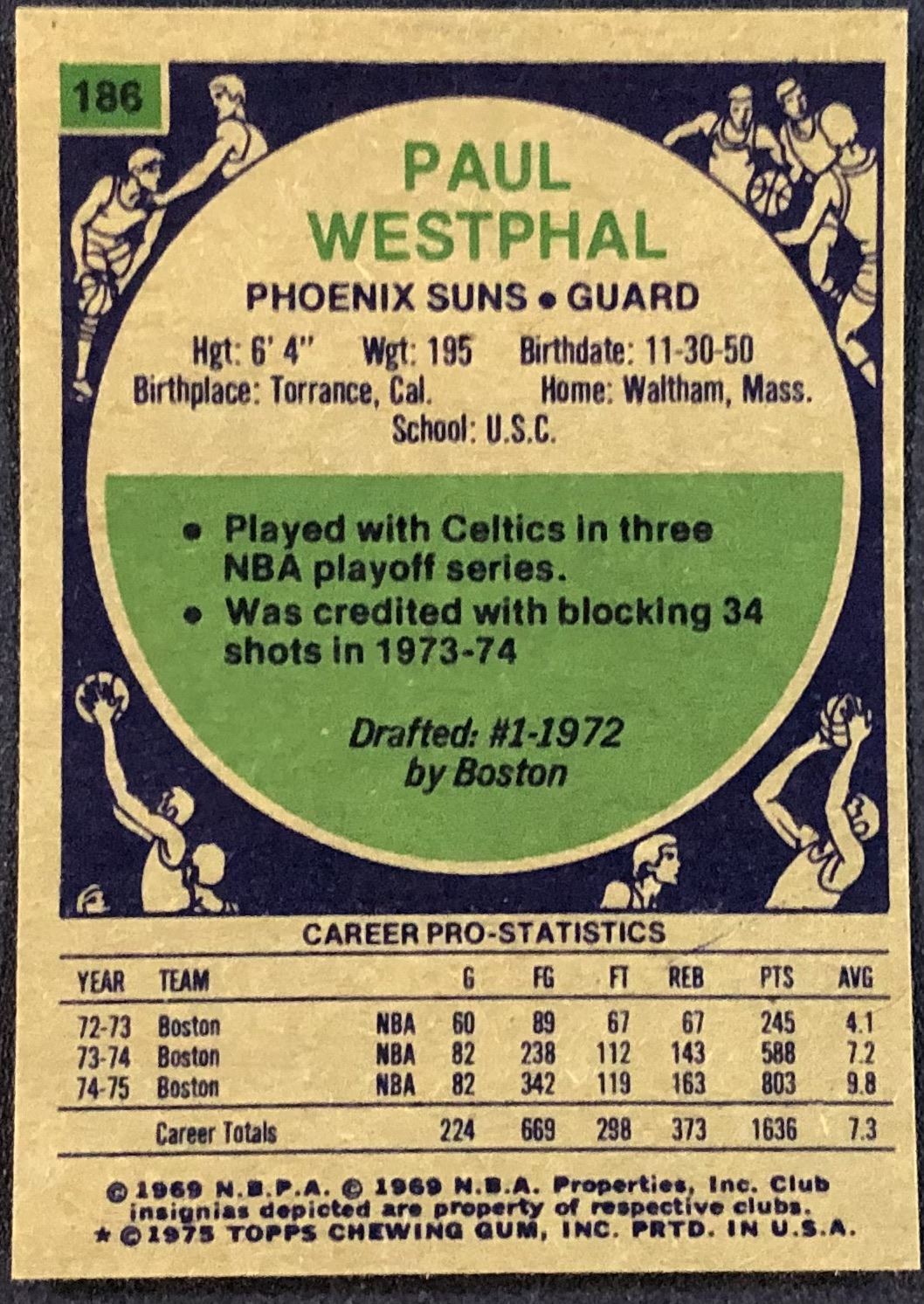 Card #186 NBA, basketball, vintage, hall of fame