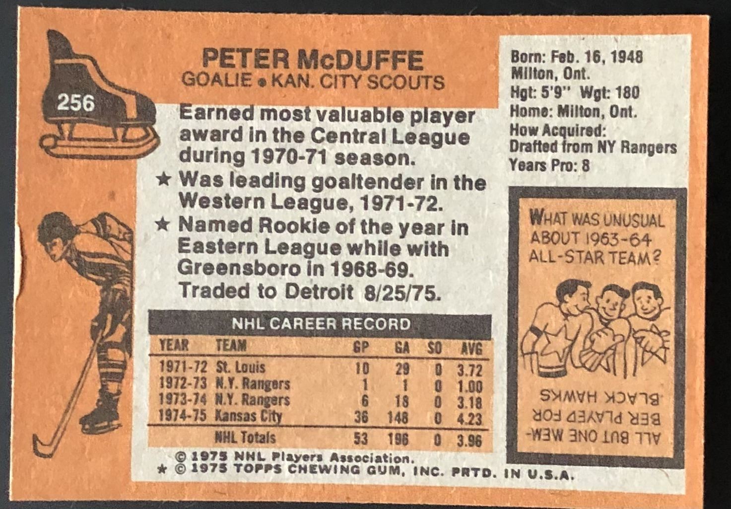 Card #256 hockey, NHL, vintage, rookie