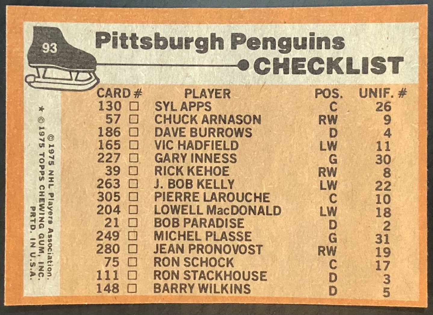 Card #93 vintage, NHL, hockey