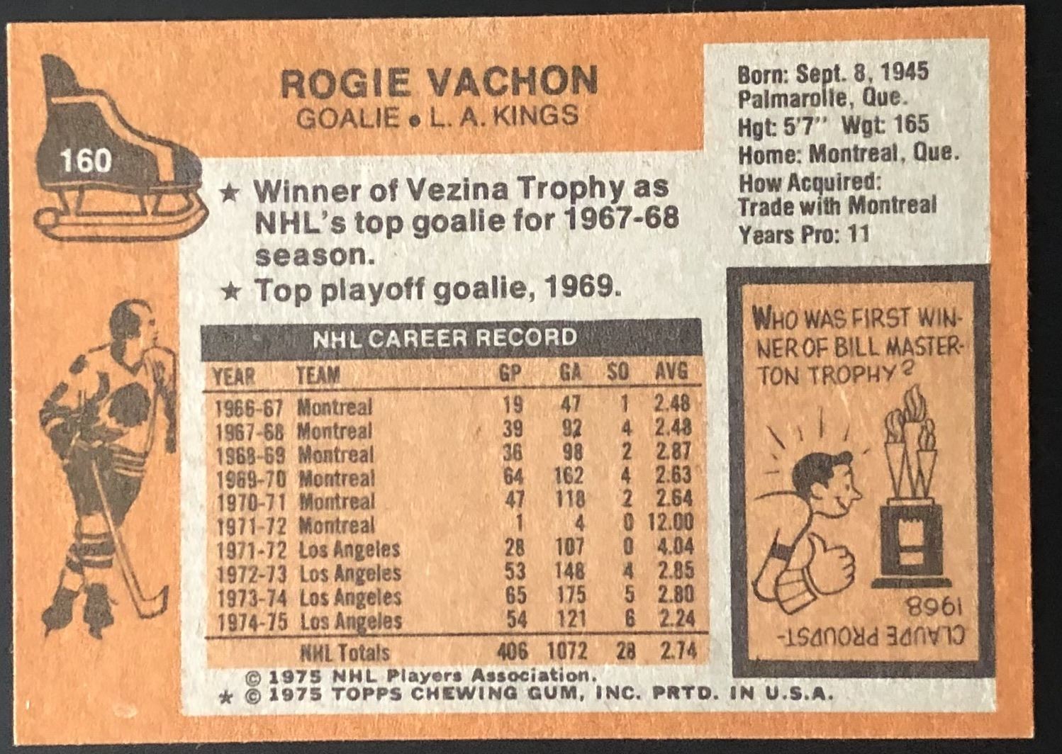 Card #160 hockey, NHL, vintage, hall of fame