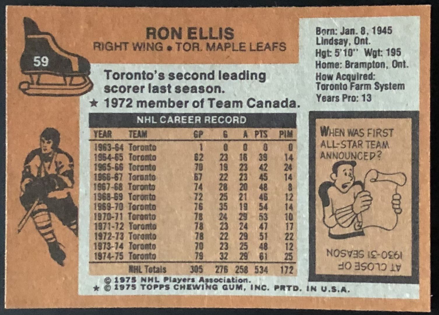 Card #59 NHL, hockey, vintage, hall of fame