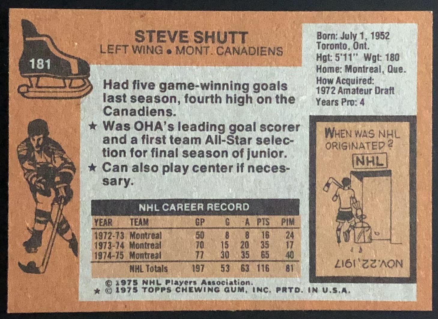 Card #181 NHL, hockey, vintage, hall of fame