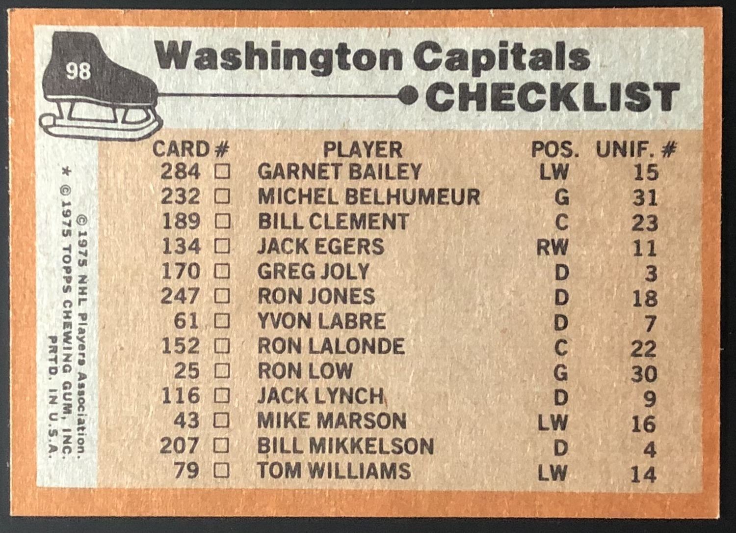 Card #98 hockey, NHL, vintage
